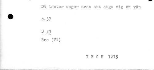 //// Då löster unger sven att atga sig en vän //// ^ s.37 //// D 33 //// Bro (VI) //// t //// I F G H 1215 ////