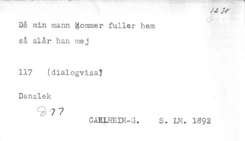 //// Då min mann gömmer fuller hem ' //// så slår han mej //// 117 (dialogvisat //// Danslek //// 9-7 7 //// CAELHEIM-G. S. LM. 1392 ////