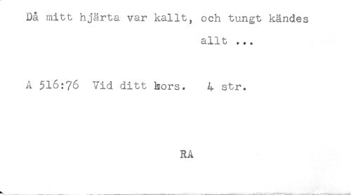 //// Då mitt hjärta var kallt, och tungt kändes //// allt ... //// A $16:76 Vid ditt kors. 4 str. //// RA //// .......,_____t____ ^ ////