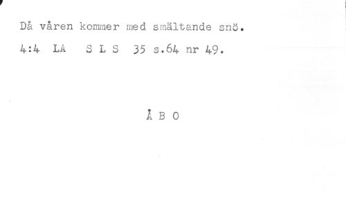 //// Då våren kommer med smältande snö. //// 4:4 LA S L S 35 s.64 nr 49. //// ÅBO ////