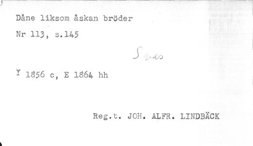 //// Dåne liksom åskan bröder //// Nr 113, s.145 //// J . //// Y 1856 c, E 1364 hh //// Reg.t. JOH. ALFR. LINDBÅCK ////
