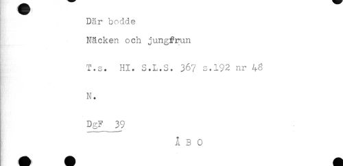 //// Där bodde //// Näcken och jungfrun //// T.s. Hl. S.L.S. 367 s.192 nr 43 //// N. //// DgF^Ji? //// ÅBO //// HH åt) ////
