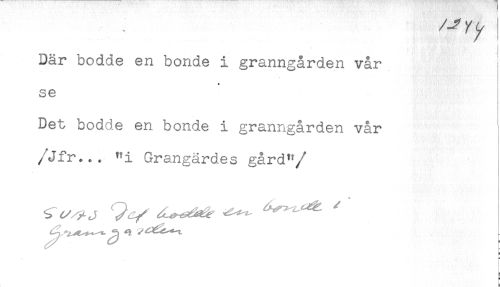//// i //// < //// ! //// Där bodde en bonde i granngården vår I //// se //// Det bodde en bonde i granngården vår //// /Jfr... "i Grangärdes gård" //// /c* ////