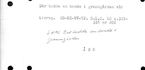 //// I ^ Där bodde en bonde i granngården vår //// 4:oreg. GB-KB-NV-TJ. S.L.S. 10 s.325- //// 326 nr 202 //// ÅBO //// I //// I - ////
