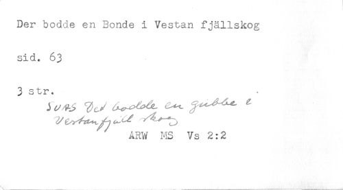 //// Der bodde en Bonde i Vestan fjällskog //// sid. 63 //// 3 str< //// ÅRW MS Vs 2:2 ////