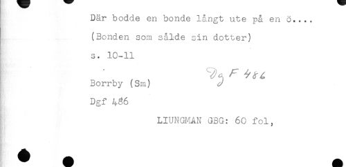 //// Där bodde en bonde långt ute på en //// (Bonden som sålde sin dotter) //// s. 10-11 //// Borrby (Sm) //// Dgf 466 //// LIUNGMAN GBG: 60 fol, ////
