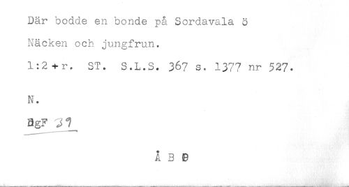 //// Där bodde en bonde på Sordavala ö //// Näcken och jungfrun. //// 1:2 +r. ST. S.L.S. 367 s. 1377 nr 527. //// N. //// BgF 1 //// ABB ////