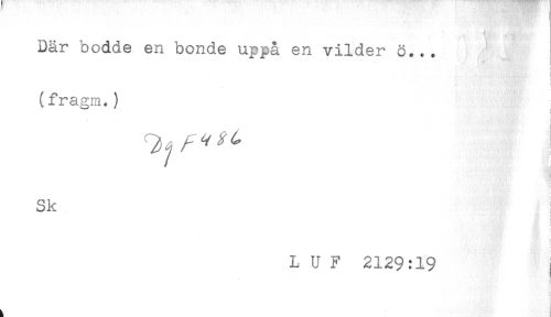 //// Där bodde en bonde uppå en vilder ö... //// < //// (fragm.) //// i //// ! //// f //// ! //// Sk //// ! //// L U F 2129:19 j ////