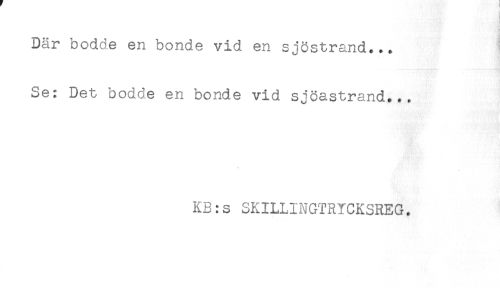 //// Där bodde en bonde vid en sjöstrand... //// Se: Det bodde en bonde vid sjöastrand... //// KB:s SKILLINGTRYCKSREG. ////