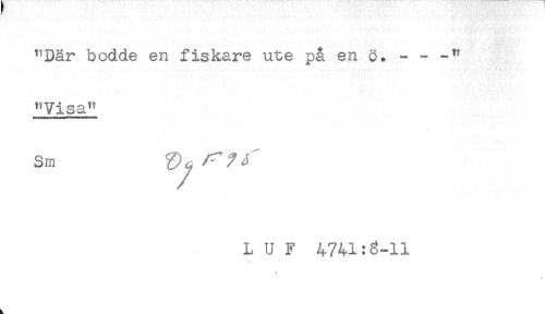 //// "Där bodde en fiskare ute på en ö. - - -" //// "Visa" //// Sm ^ ^ ^ //// L U F 4741:6-11 ////