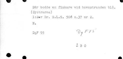 //// Där bodde en fiskare vid havsstranden blå. //// (Systrarna) //// l:2+r Br. S.L.S. 50g s.37 nr 2. //// N. //// DgF 95 ^ //// ÅBO ////