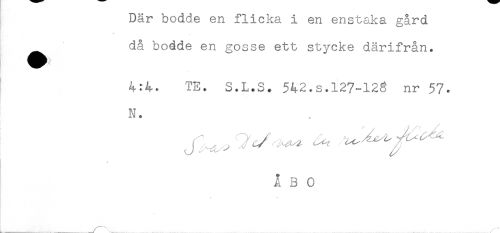 //// Där bodde en flicka i en enstaka gård //// då bodde en gosse ett stycke därifrån. //// 4:4. TE. S.L.S. 542.s.127-126 nr 57. //// N. //// * //// ÅBO //// - ////