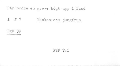 //// Där bodde en greve högt upp i land //// 1 f ? Näcken och jungfrun //// DgF 39 //// FSF V;1 ////