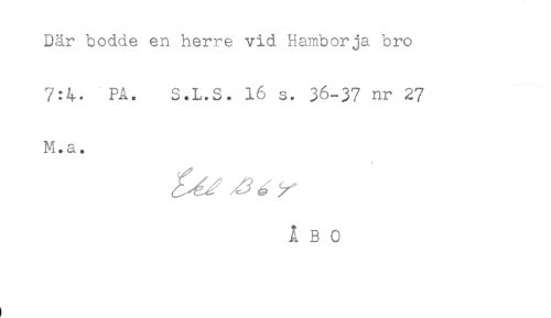 //// Där bodde en herre vid Hamborja bro //// 7:4. PÅ. S.L.S. 16 S. 36-37 nr 27 //// M.a. //// ÅBO //// t ////