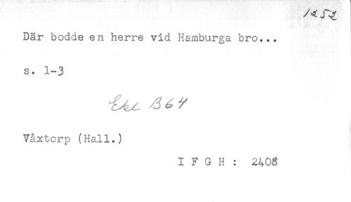 //// Där bodde en herre vid Hamburga bro... //// s. 1-3 //// Våxtcrp (Hall.) //// I F G H : 240g ////