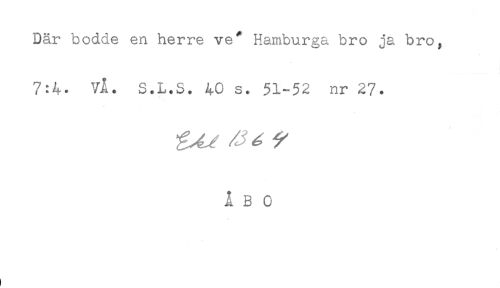 //// Där bodde en herre ve* Hamburga bro ja bro, //// 7:4- VÅ. S.L.S. 40 s. 51-52 nr 27. //// ÅBO ////