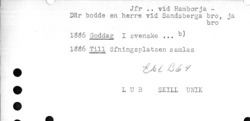 //// Jir . . vid Hamborja - //// Där bodde en herre vid Sandsberga bro, ja //// bro //// Goddag I svenske ... //// Till öfningsplatsen samlas //// * //// ^ L U B SK ILL UNIK //// M ////