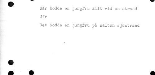 //// Där bodde en jungfru allt vid en strand //// Jfr //// Det bodde en jungfru på sältan sjöstrand //// - //// t //// /! ////
