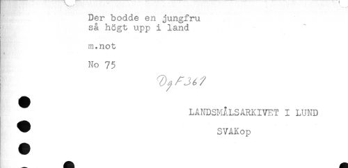 //// Der bodde en jungfru //// så högt upp i land //// m.not //// No 75 //// ? /"J 6 , //// ^ LANDSMÅLSARKIVET I LUND //// ^ SVAKop //// - ////