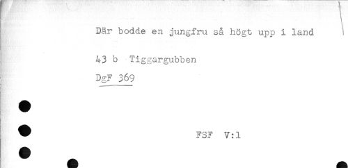 //// . //// Där bodde en jungfru så högt upp i land i //// 43 b -Tiggargubben //// ; DgF 369 //// ^ FSF V:1 ////