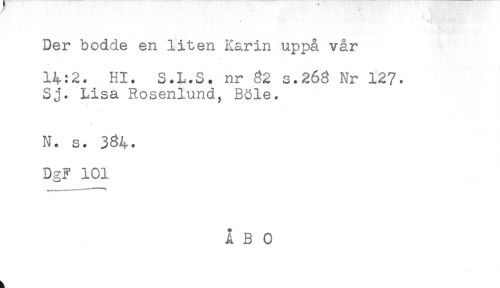 //// Der bodde en liten Karin uppå vår //// 14:2. Hl. S.L.S. nr 32 s.263 Nr 127. //// Sj. Lisa Rosenlund, Böle. //// N. s. 334. //// DgF 101 //// ÅBO ////