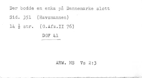 //// Der bodde en enka på Dannemarke slott //// Sid. 351 (Havsmannen) //// 14 å str. (G.Afz.II 76) //// DGF 41 //// ARW. MS Vs 2:3 ////