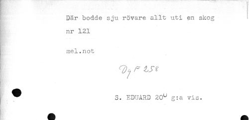 //// B7. //// t!. <',<.. ' * //// /! Där bodde sju rövare allt uti en skog //// nr 121 //// mel.not //// ^ ^ S. EDUARD 20^ g:a vis. ////