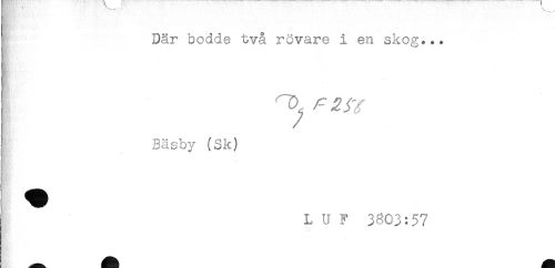//// ) Där bodde två rövare i en skog... //// I ^ //// Bäsby (Sk) //// } L U F 3303:57 //// t ////