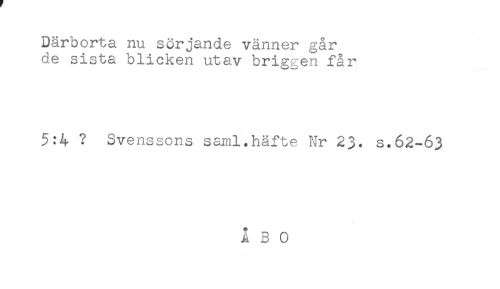 //// Därborta nu sörjande vänner går //// de sista blicken utav briggen får //// 5:4 ? Svenssons saml.häfte Nr 23. s.62-63 //// ÅBO ////