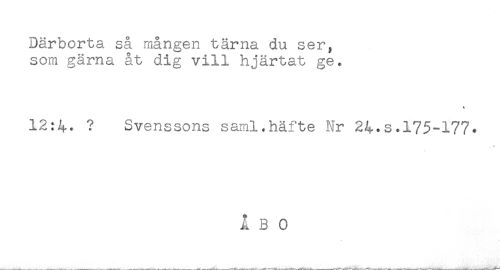 //// Därborta så mången tärna du ser, //// som gärna åt dig vill hjärtat ge. //// 12:4. ? Svenssons saml.häfte Nr 24.s.175-177. //// ÅBO ////