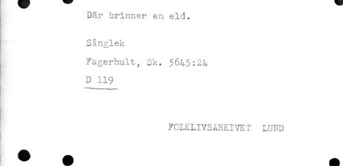 //// Där brinner en eld. //// Sånglek //// Fagerhult, Sk. 5645:24 //// D 119 //// FOLKLIVSARKIVET LUND ////