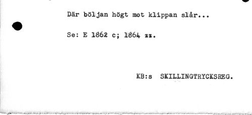//// Där böljan högt mot klippan slår... //// Se: E 1862 c; 1864 M. //// KB:s SKILLINGTRYCKSREG. ////