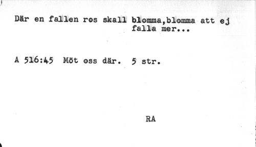//// Där en fallen ros skall blomma,blomma att ej //// falla me r... //// < //// t //// i //// A 516:45 Möt oss där. 5 str. //// ! //// RA //// < //// < //// i //// ' ^ //// i ////