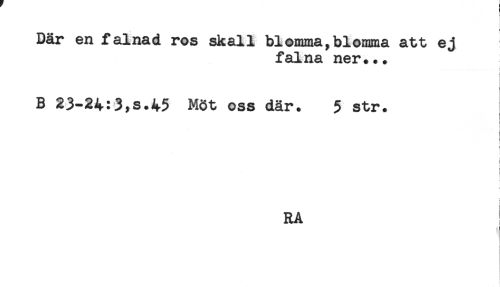 //// Där en falnad ros skall blomma,blomma att ej //// falna ner... //// i //// } //// B 23-24:3,s.45 Möt oss där. 5 str. //// i //// i //// ) //// j //// RA //// tu ////