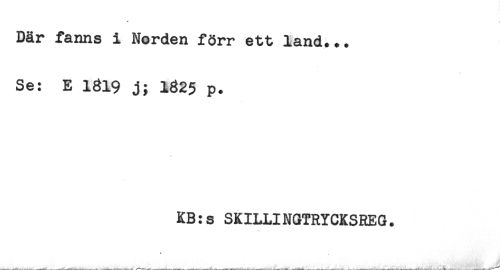 //// * I //// Där fanns i Norden förr ett land... //// Se: E 1819 j; 1825 p. //// KB:s SKILLINGTRYCKSREG. //// < ////