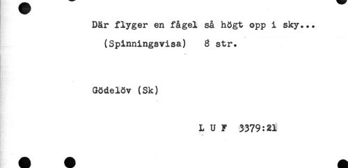 //// Där flyger en fågel så högt opp i sky... //// (Spinningsvisa) 3 str. //// Gödelöv (Sk) //// L U F 3379:21 ////