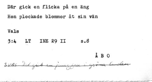 //// Där gick en flicka på en äng //// Hon plockade blommor åt sin vän //// Vals //// 3:4 LT INE 29 II s.3 //// ' -A' //// ÅBO ////