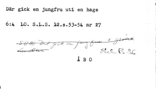 //// g //// Där gick en jungfru uti en hage //// 6:4 LO. S.L.S. 12.s.53-54 nr 27 //// x-: ; //// 1 //// r I //// i //// ÅBO //// - //// ! //// ) //// t //// . //// i //// t ' i ////