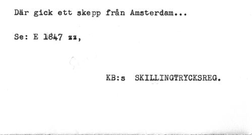 //// Där gick ett skepp från Amsterdam... //// Se: E 1347 sa, //// KB:s SKILLINGTRYCKSREG. ////