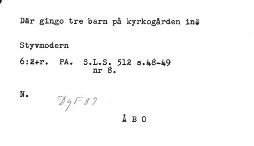 //// Där gingo tre barn på kyrkogården ing //// Styvmodern //// 6:2+r. PA. S.L.S. 512 3.46-49 //// nr g. ////