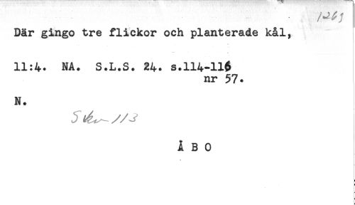 //// Där gingo tre flickor och planterade kål, //// 11:4. NA. S.L.S. 24. s.114-11$ //// nr 57. //// N. //// [ //// y ^ - ^ //// ÅBO ////