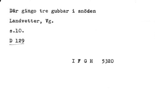 //// Där gingo tre gubbar i snöden //// Landvetter, Vg. //// s.10. //// D 129 //// I F G H 5320 ////