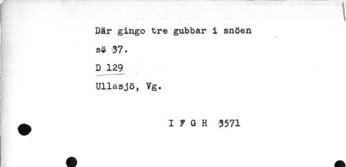 //// Där gingo tre gubbar i snöen //// sö 37. //// D 129 //// Ullasjö, Vg. //// ^ I F G H 3571 ////