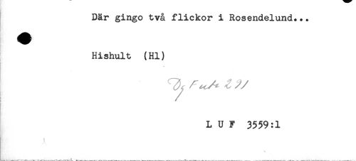 //// Där gingo två flickor i Rosendelund... //// Hishult (Hl) //// k //// /"^./v. t, ^ //// //// /L U F 3559:1 //// % ////