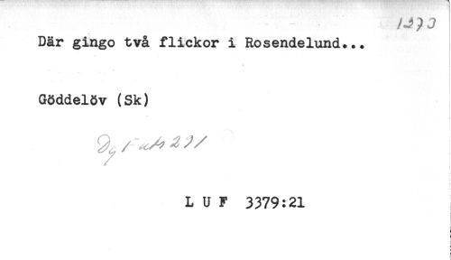//// /j; j //// Där gingo två flickor i Rosendelund... //// . - //// i //// Göddelöv (Sk) //// L U F 3379:21 //// L //// ! //// ! //// i //// b //// b //// - ////