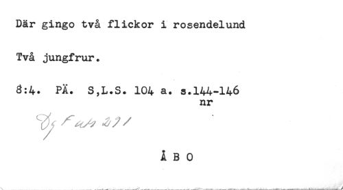 //// Där gingo två flickor i rosendelund //// Två jungfrur. //// 3:4. PÄ. S,L.S. 104 a. s.144-146 //// nr //// ÅBO ////