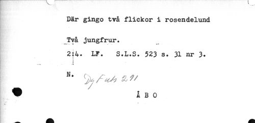 //// Där gingo två flickor i rosendelund //// Två jungfrur. //// 2:4. LF. S.L.S. 523 s. 31 nr 3. //// ^ ÅBO ////