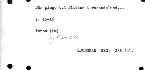 //// Där gingo två flickor i rosendelund... //// s. 15-16 //// Torpa (Sm) //// LJUNGMAN GBG: 236 fol. ////