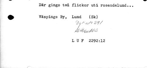 //// Dar gingo tva flickor uti rosendelund... //// ^ Väspinge By, Lund (Sk) //// ! ^^^ //// L U F 2292:12 //// r //// ! //// ...... . .....,-" ////