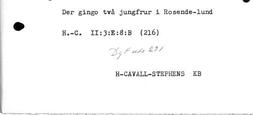 //// Der gingo två jungfrur i Rosende-lund //// ^ H.-C. II:3:E:8:B (216) //// H-CAVÅLL-STEPHENS KB ////